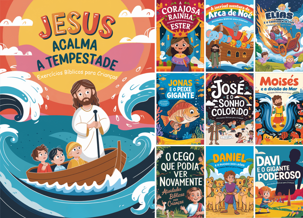 Troque os desenhos vazios por histórias que ensinam a fé, obediência e o amor desde cedo.